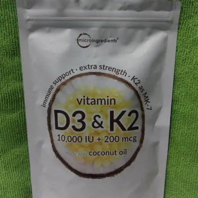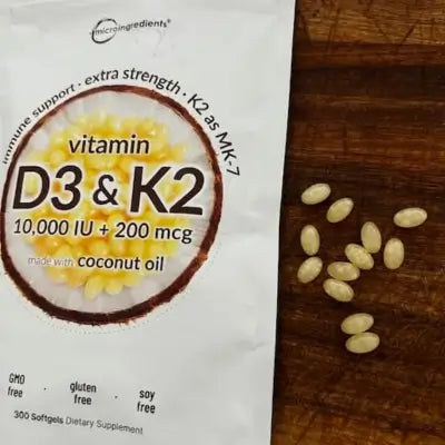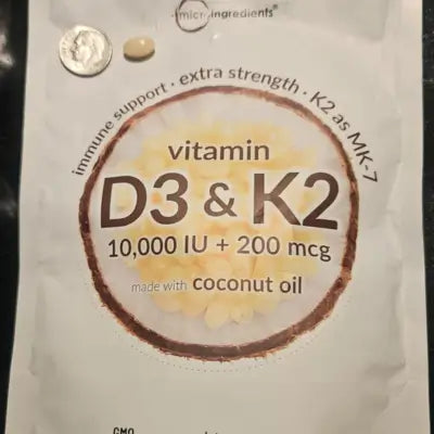 Contenido: Vitamina D3 10,000 IU + Vitamina K2 MK-7 200 mcg